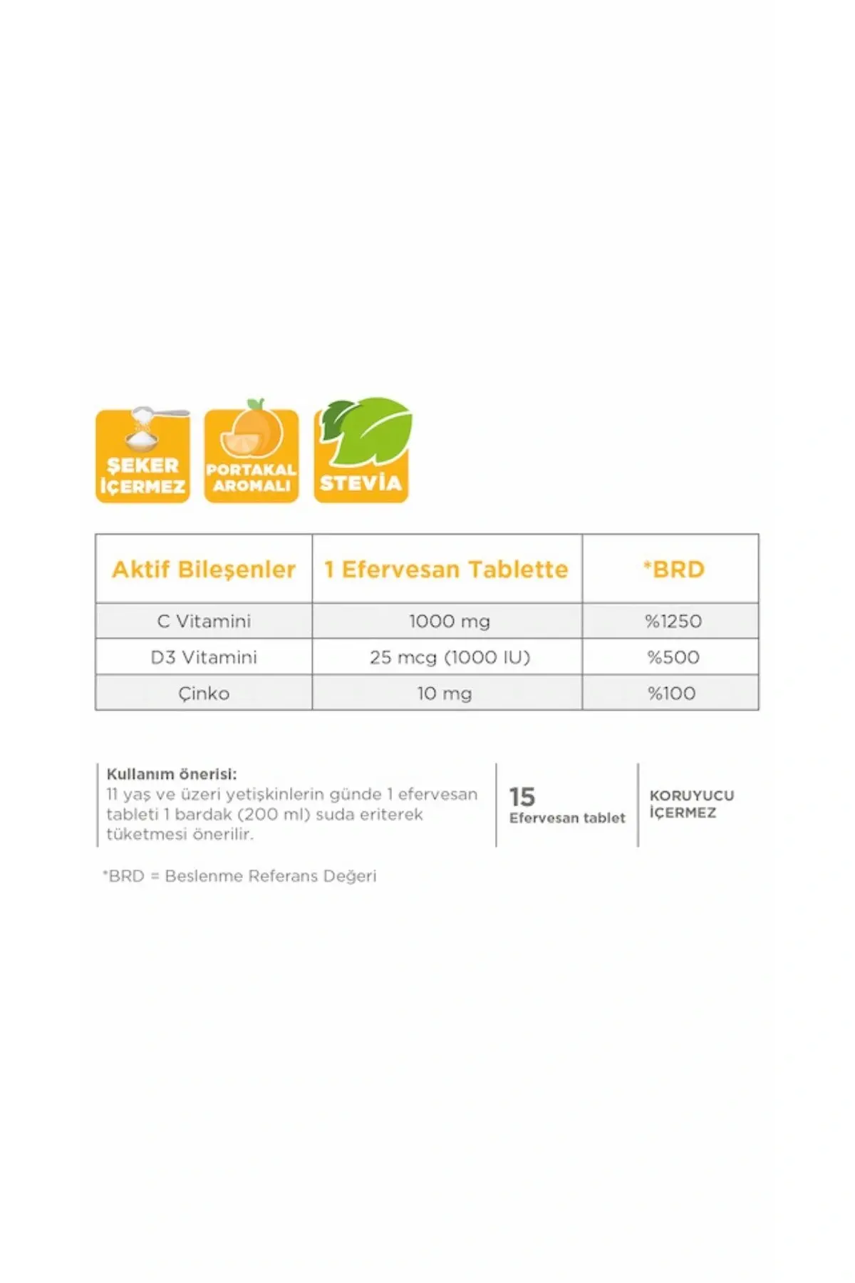 C-D Vitamini ve Çinko 15 Efervesan Tablet - C Vitamini, D Vitamini, Çinko
