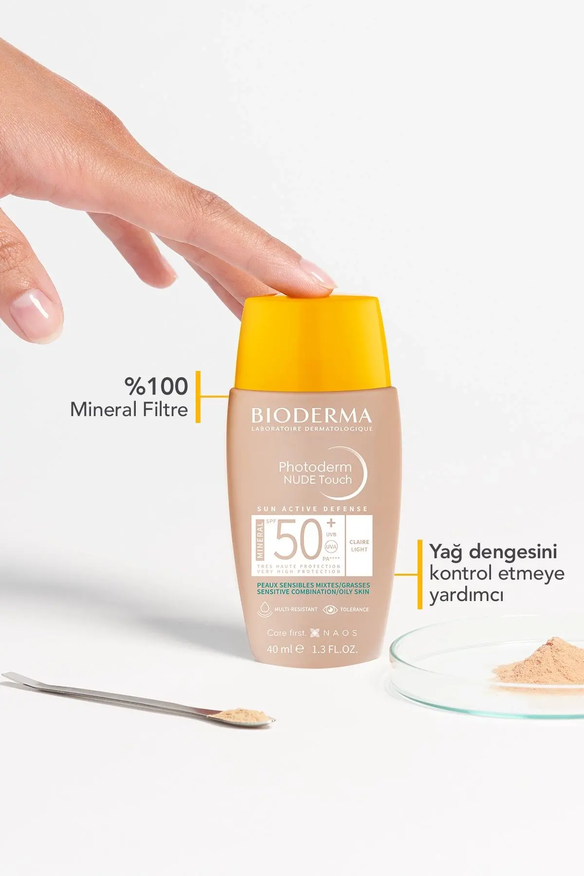 Karma, yağlı ve akne eğilimli ciltler için %100 mineral filtreli ve doğal kapatıcı etkili çok yüksek güneş koruyucu Ödüllü -Yüksek teknolojili Sun Active Defense™* patenti UVA ışınlarına karşı güçlendirilmiş içeriği ve UVB ışınlarına karşı etkili performansı ile güneşe karşı %99.8 DNA koruması** sağlar. -Benzersiz UV filtreleri ve patentli biyolojik koruma ile güneşe karşı cildin kendini savunma mekanizmasını güçlendirerek hücrelerin korunmasına ve cildin erken yaşlanmasının önlenmesine destek olur. -Cildi pürüzsüzleştirmeye, 8 saat boyunca cildi matlaştırmaya ve cildin yağ dengesini kontrol etmeye yardımcı olur. -Ultra hafif, renkli dokusu sayesinde cilt tonunu eşitleyerek doğal bir görünüm sağlar. -Yapışkan ve yağlı bir his bırakmaz. * Sun Active Defense™: BIODERMA patenti **Güneş kaynaklı oluşan reaktif oksejin türlerinin DNA'ya verdiği hasara karşı koruma. İnsan melanositleri üzerinde in vitro çalışma, 2005 Yetişkinler ve Gençler için kullanım önerileri -Nemlendirici bakım kreminden sonra cilde uygulayınız. -İçerisindeki bilyelerin sesini duyana kadar iyice çalkalayınız. -Güneşe çıkmadan önce yüz bölgesine bolca ve eşit bir şekilde uygulayınız. -2 saatte bir ve özellikle yüzme, terleme ve havluyla kurulama sonrası tekrar uygulanmalıdır. -Gözlere direkt temas ettirilmemelidir. İÇERİK: ZINC OXIDE (NANO], DIMETHICONE, ISODODECANE, ISOSTEARYL ISOSTEARATE, BUTYROSPERMUM PARKI (SHEA) OIL, TITANIUM DIOXIDE (NANO], PROPYLHEPTYL CAPRYLATE, DIPROPYLENE GLYCOL, METHYL METHACRYLATE CROSSPOLYMER, SILICA, POLYMETHYLSILSESQUIOXANE, POLYHYDROXYSTEARIC ACID, AQUA/WATER/EAU, HDI/ TRIMETHYLOL HEXYLLACTONE CROSSPOLYMER, PEG-10 DIMETHICONE, IRON OXIDES (CI 77492),POLYSILICONE-11, TRIETHOXYCAPRYLYLSILANE, SALICYLIC ACID, BUTYLENE GLYCOL, CAPRYLOYL GLYCINE, PROPYL GALLATE, IRON OXIDES (CI 77491),HYDROGENATED LECITHIN, CAPRYLYL GLYCOL, DECYL GLUCOSIDE, TOCOPHEROL, ECTOIN, MANNITOL, XYLITOL, IRON OXIDES
